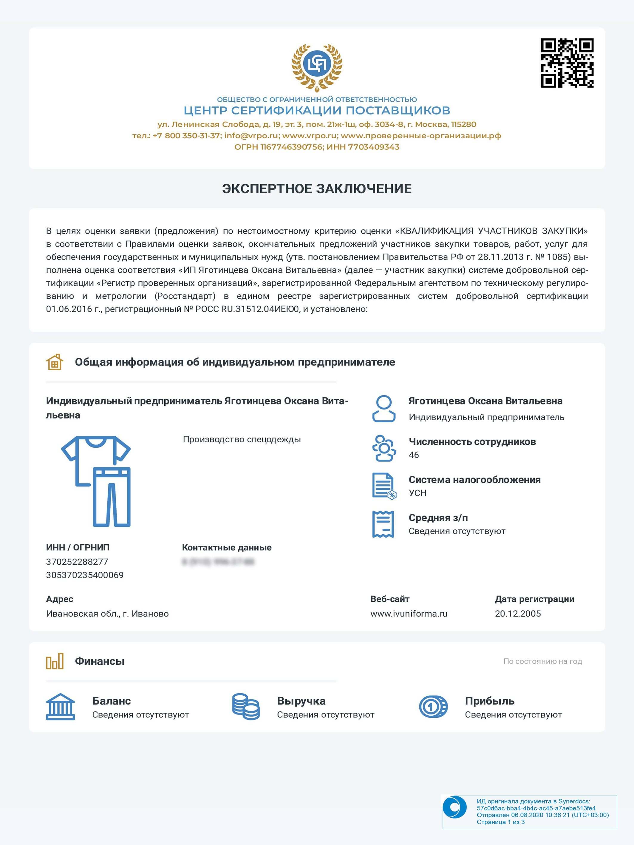 Сертификаты | Компания «IVUNIFORMA»